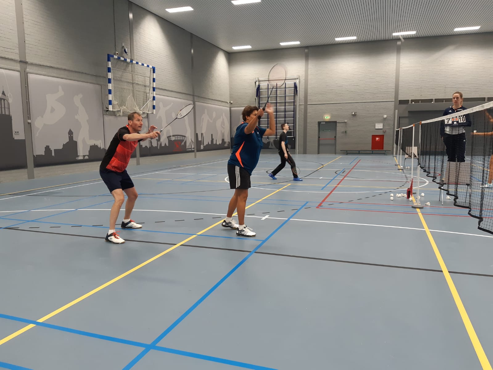 De dames dubbel kwam wat roestig op gang, maar Annabelle en Leonie schitterden in de 2e en 3e game. Na veel lange rally’s strandde het avontuur met 19-21 voor de tegenstander.