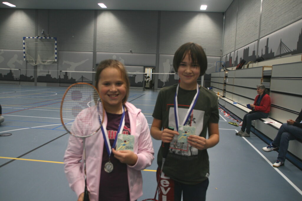 In de categorie voor de beginnende badmintonners onder de 11 jaar heeft Elvira haar eerste titel als clubkampioen binngehaald. Wat een prestatie! Ook Chima wist twee titels binnen te harken: één in het enkelspel onder 13 jaar, en één in het dubbelspel met Tibbe.