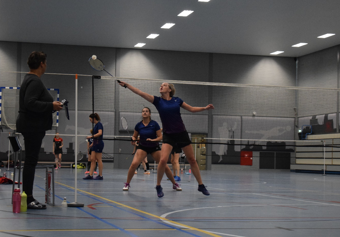 Daarnaast een extra uitdaging, vanwege een mysterieuze voetblessure van Layla (“Ja hoor, Iron man races kan ik wel, maar na een kwartiertje badmintonnen is het klaar”) was het boegbeeld van het team niet in staat te spelen. Een aderlating, maar Gita en Maaike nemen het sportief en spelen elk drie wedstrijden. Maar Layla was wel in de zaal te vinden, voor aanmoediging en foto’s!